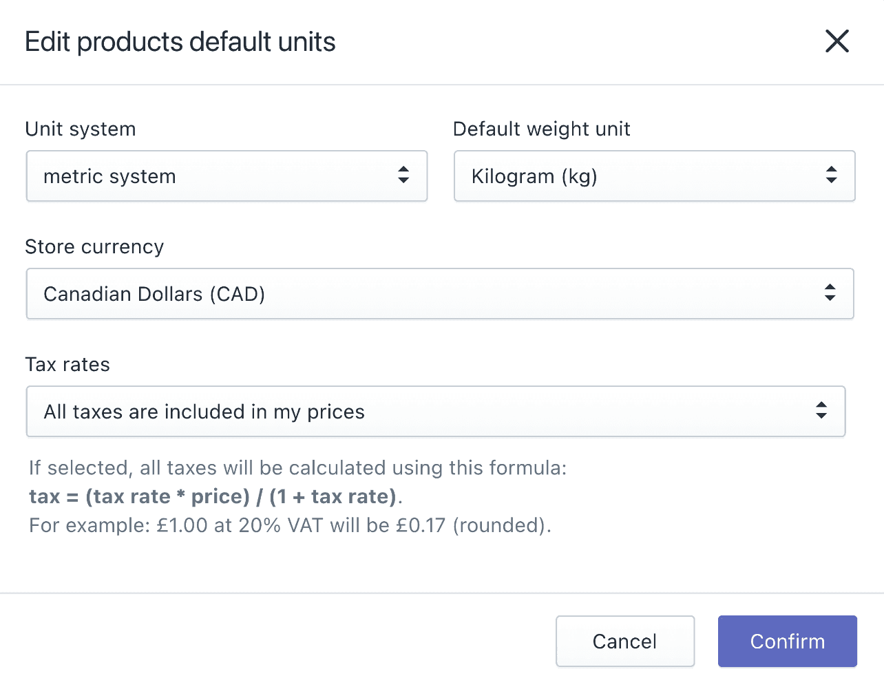 Products default units are used to calculate product prices, shipping weights, and order times. You can edit the products default units as per your store.